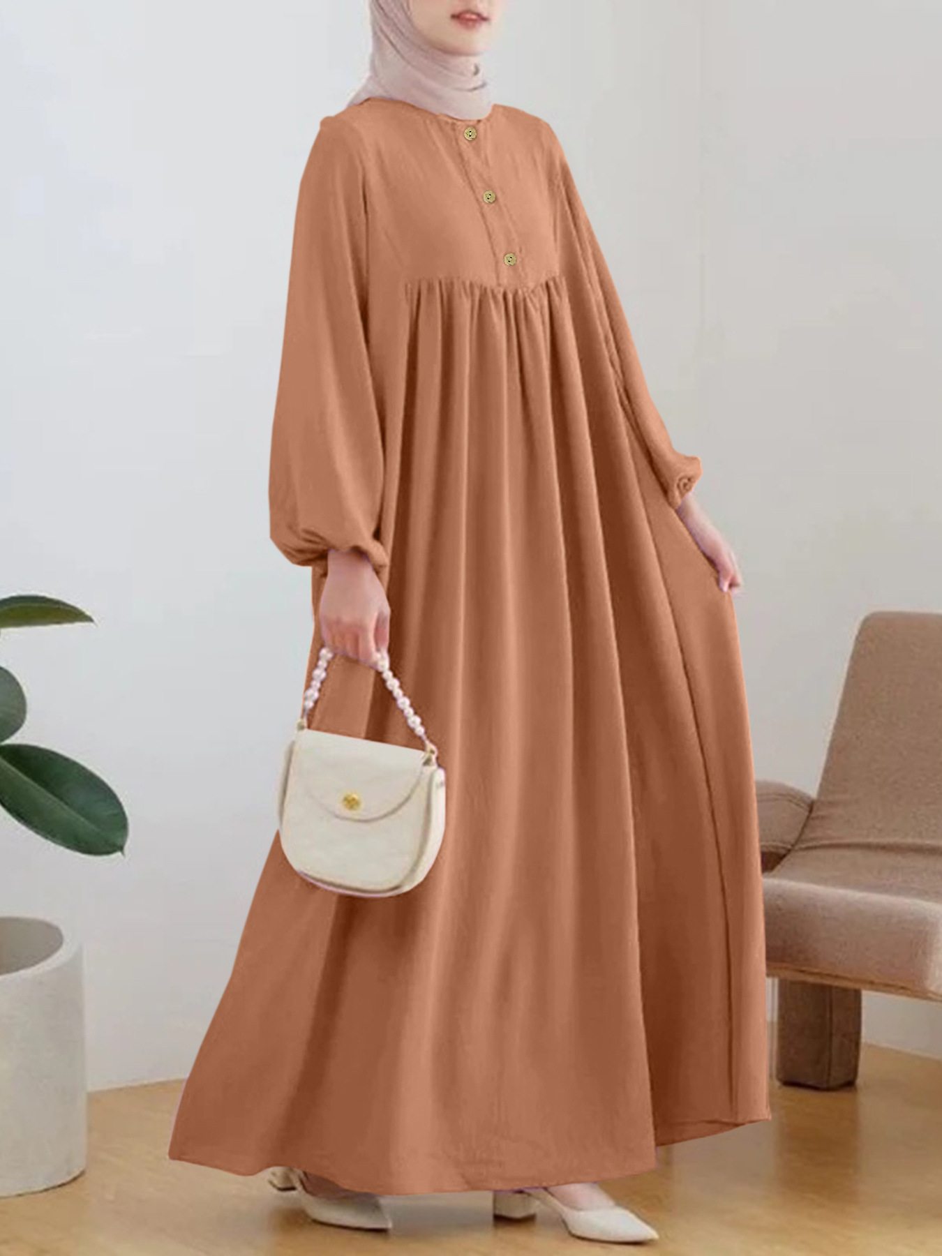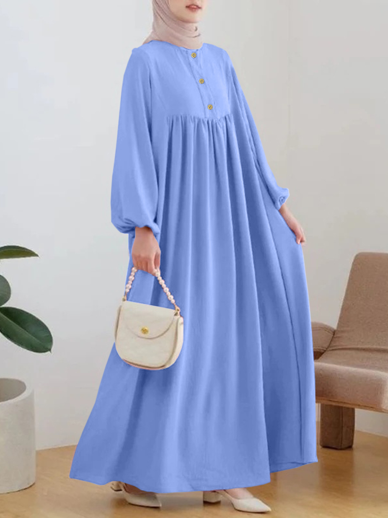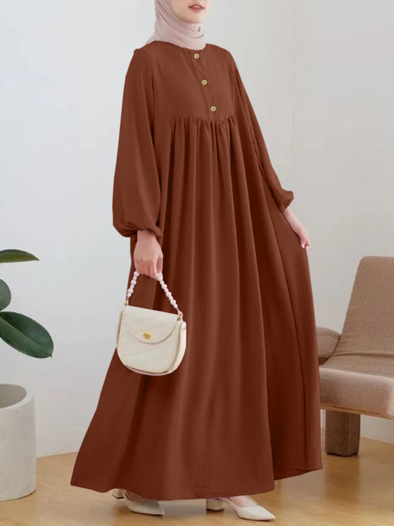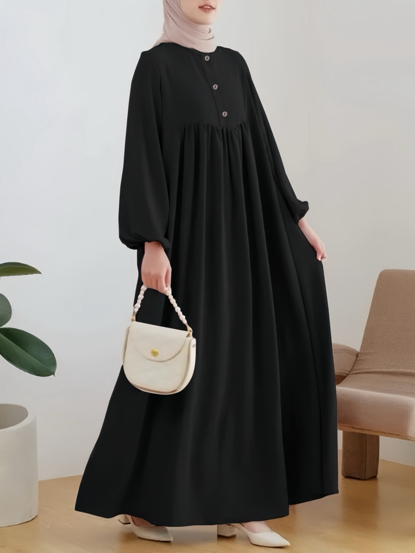 Stylish Puff Sleeves: Features trendy puff sleeves for a fashionable look.