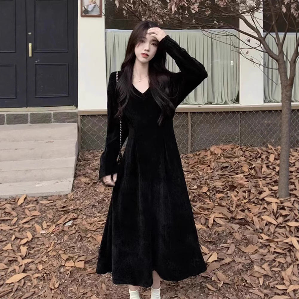 White V-neck Inner Wear Base Knitted Dress Sweater Women's